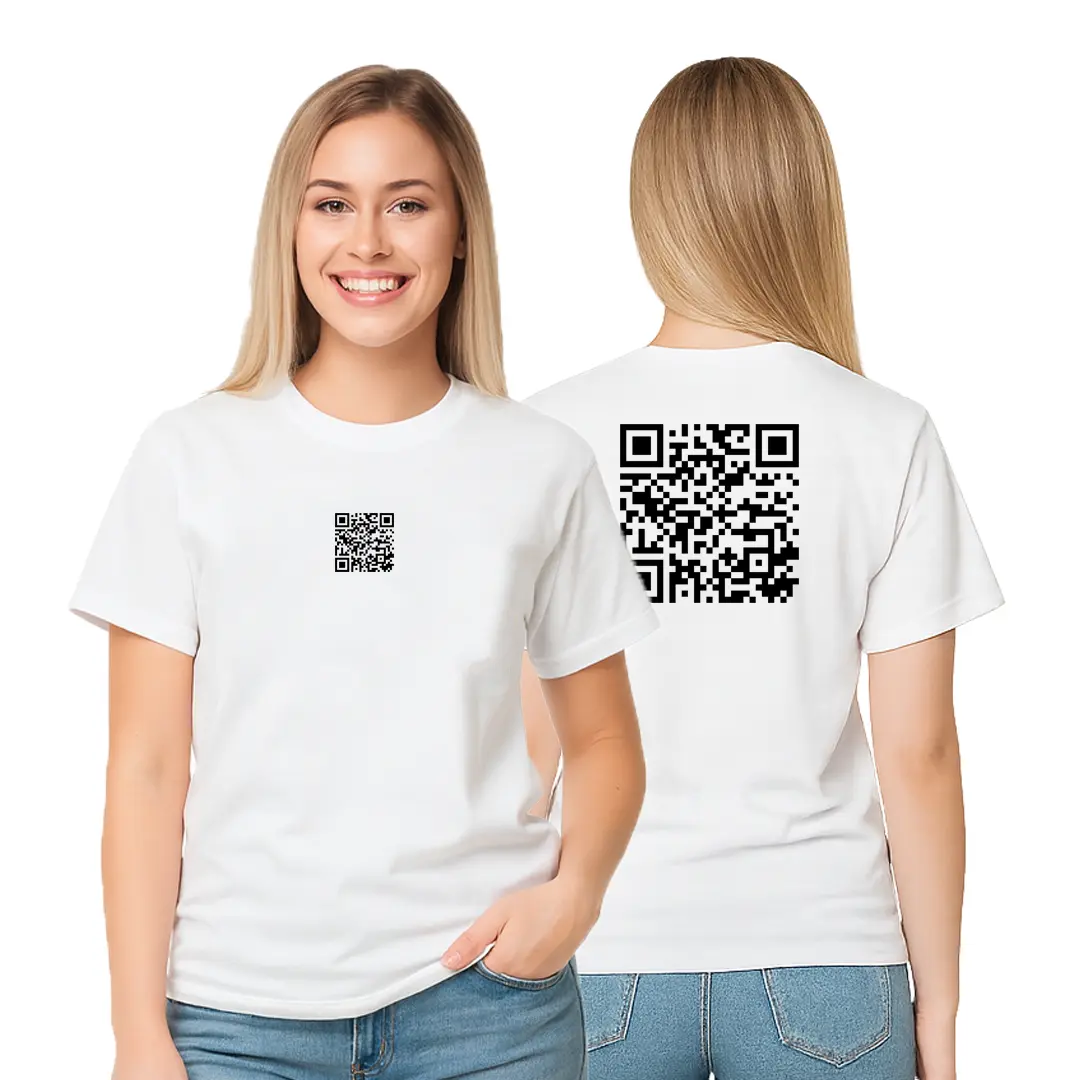 Camiseta Branca Algodão Personalizada QR CODE frente e verso