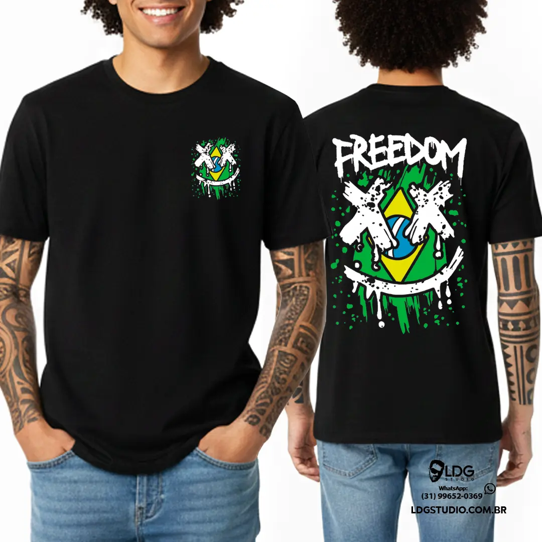 Camiseta Preta StreetWear Freedom Personalizada Frente e Verso