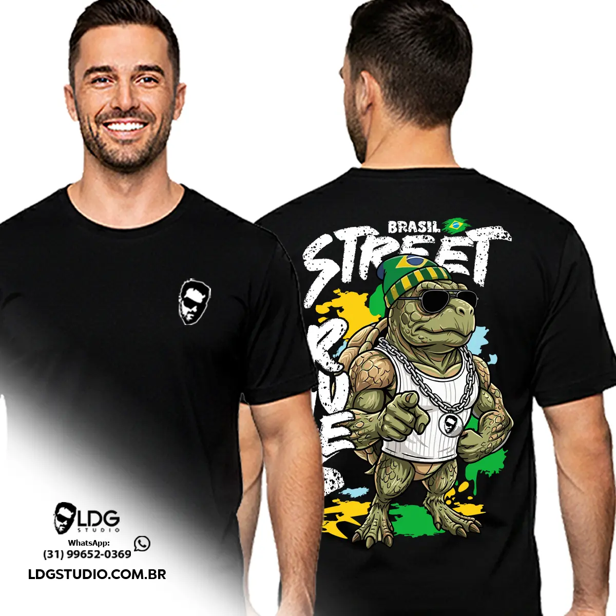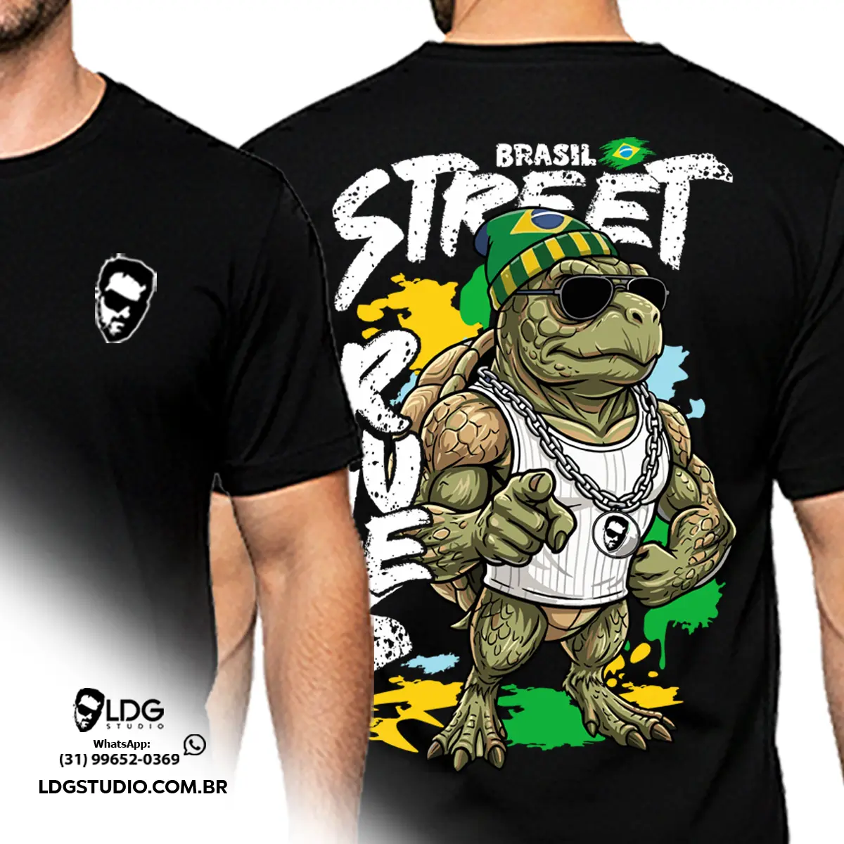 Camiseta Preta Street Rules Tartaruga