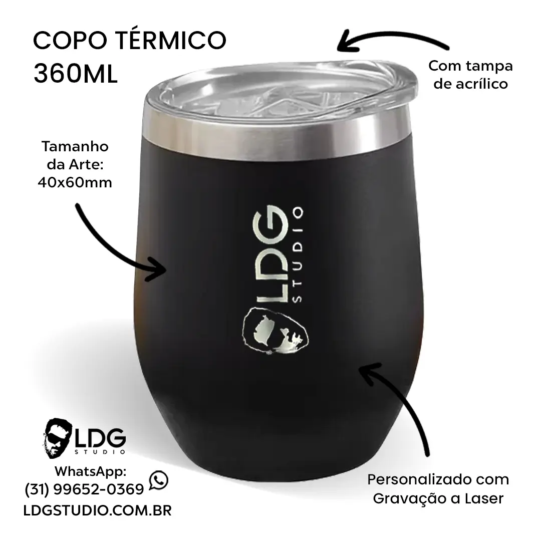 Copo Térmico Preto 360ml Personalizado Gravação a Laser