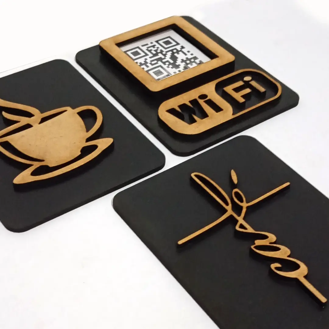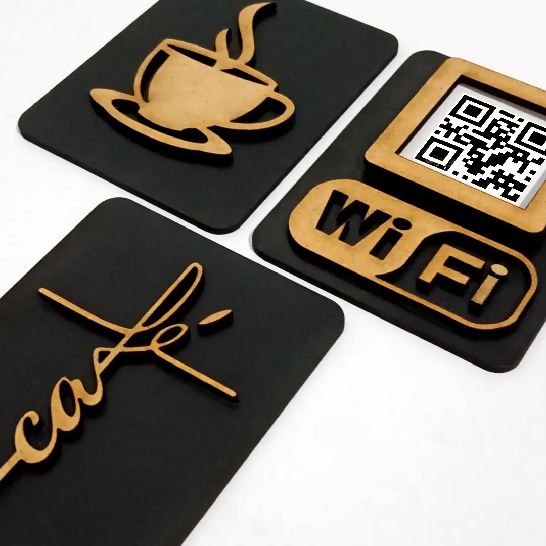 Kit 03 Plaquinhas Decorativas Cantinho do Café WiFi QR CODE