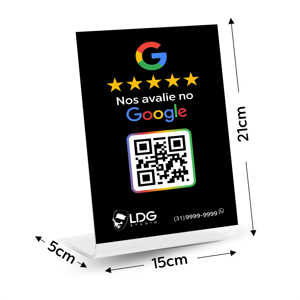 KIT 05 DISPLAY ACRÍLICO EM L PARA AVALIAÇÃO GOOGLE COM QR CODE